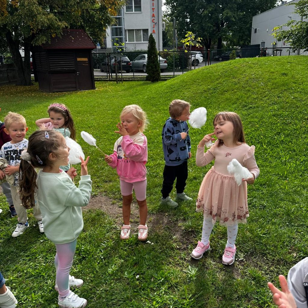 Z okazji Dnia Przedszkolaka nasze dzieci miały mnóstwo powodów do radości! Najwięcej uśmiechu wywołały dmuchane atrakcje – skakanie, zjeżdżanie i wspinanie się dostarczyło wszystkim mnóstwo pozytywnej energii. Na zakończenie czekała słodka niespodzianka – puszysta wata cukrowa, która smakowała wyjątkowo dobrze po pełnej emocji zabawie. To był dzień pełen uśmiechu, dobrej zabawy i niezapomnianych chwil!
