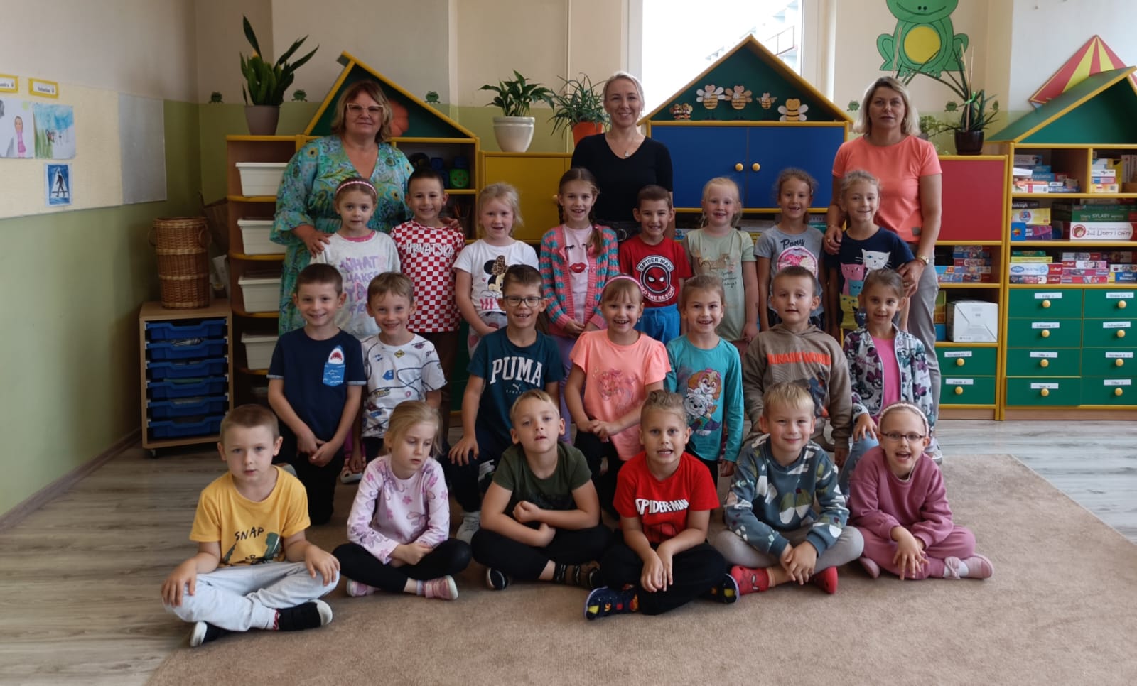 Do grupy „Pszczółek” uczęszczają najstarsze przedszkolaki, które uwielbiają różnego rodzaju zabawy ruchowe. Bardzo chętnie tańczą i uczą się śpiewu oraz wykonują coraz piękniejsze i ciekawsze prace plastyczne. „Pszczółki” są ciekawe świata oraz bardzo lubią słuchać bajek czytanych przez nauczyciela. Najbardziej lubianą przez nasze dzieci aktywnością jest oczywiście aktywność ruchowa, zwłaszcza na świeżym powietrzu.